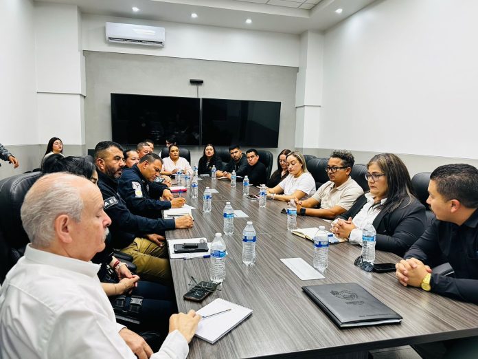 Ensenada.– Ante las continuas amenazas que se han hecho en escuelas de Ensenada, sobre tiroteos o ataques, la Dirección de Seguridad Pública Municipal (DSPM) llevó a cabo una mesa de trabajo en materia de seguridad escolar, con la participación de diversas instancias de los tres órdenes de gobierno y del sector educativo.